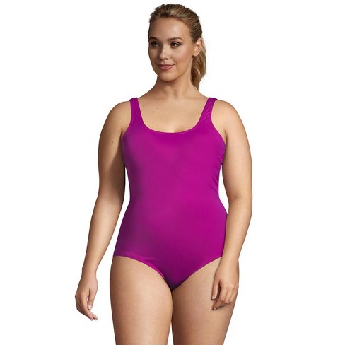 Lands End Women S Plus Size Long Chlorine Resistant Scoop Neck Soft Cup Tugless Sporty One Piece Swimsuit 22w Violet Rose Target